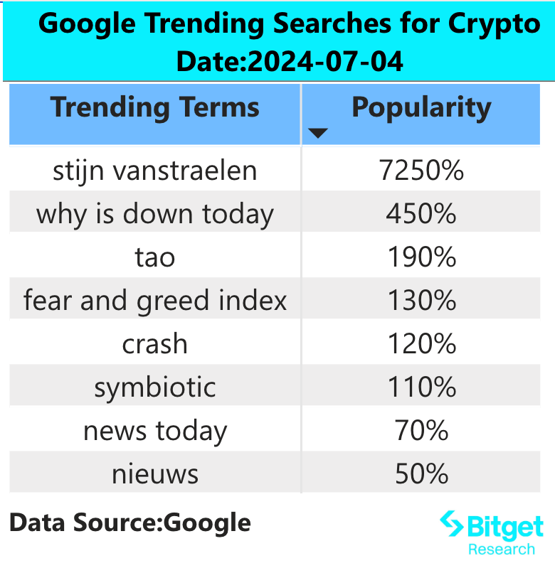 (2)欧美国家:无明显热点,各国热搜 Top 榜单上的代币和词条均不同,如:意大利交易者在关注 TAO、NOT、SOL 等,德国用户关注 SOL、LDO,英国用户关注 ETH、TAO 等。