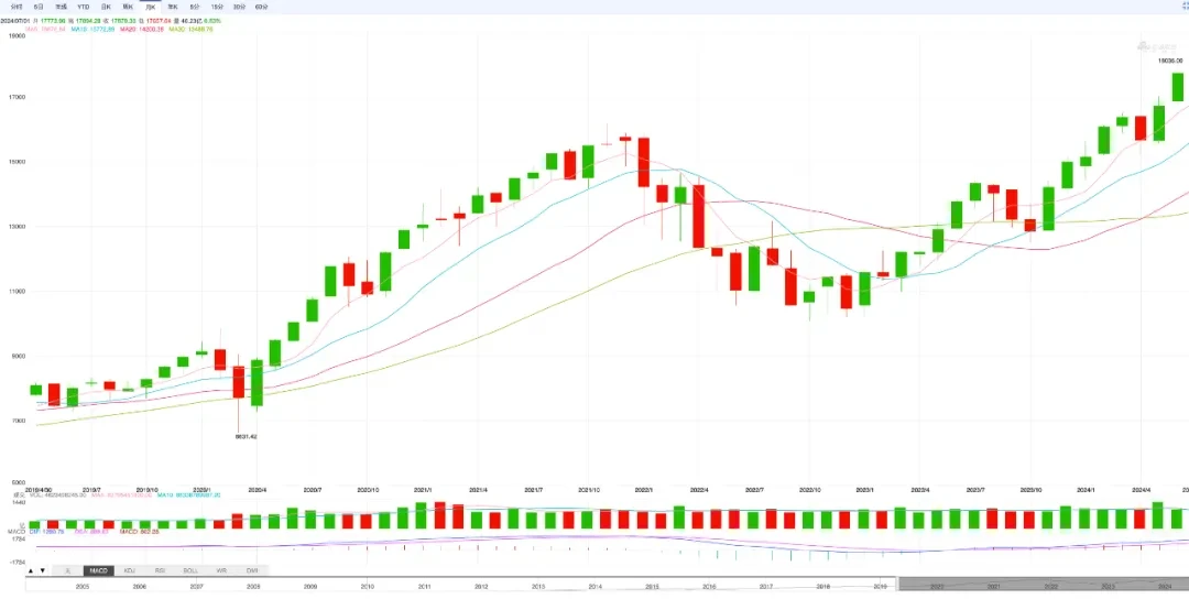 6 月,纳指强势上涨 5.96% ,再创历史新高