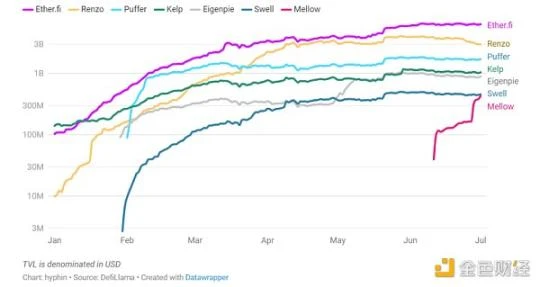 今年至今为止锁定在流动性再质押协议(包括所有链)中的资产总价值如下: