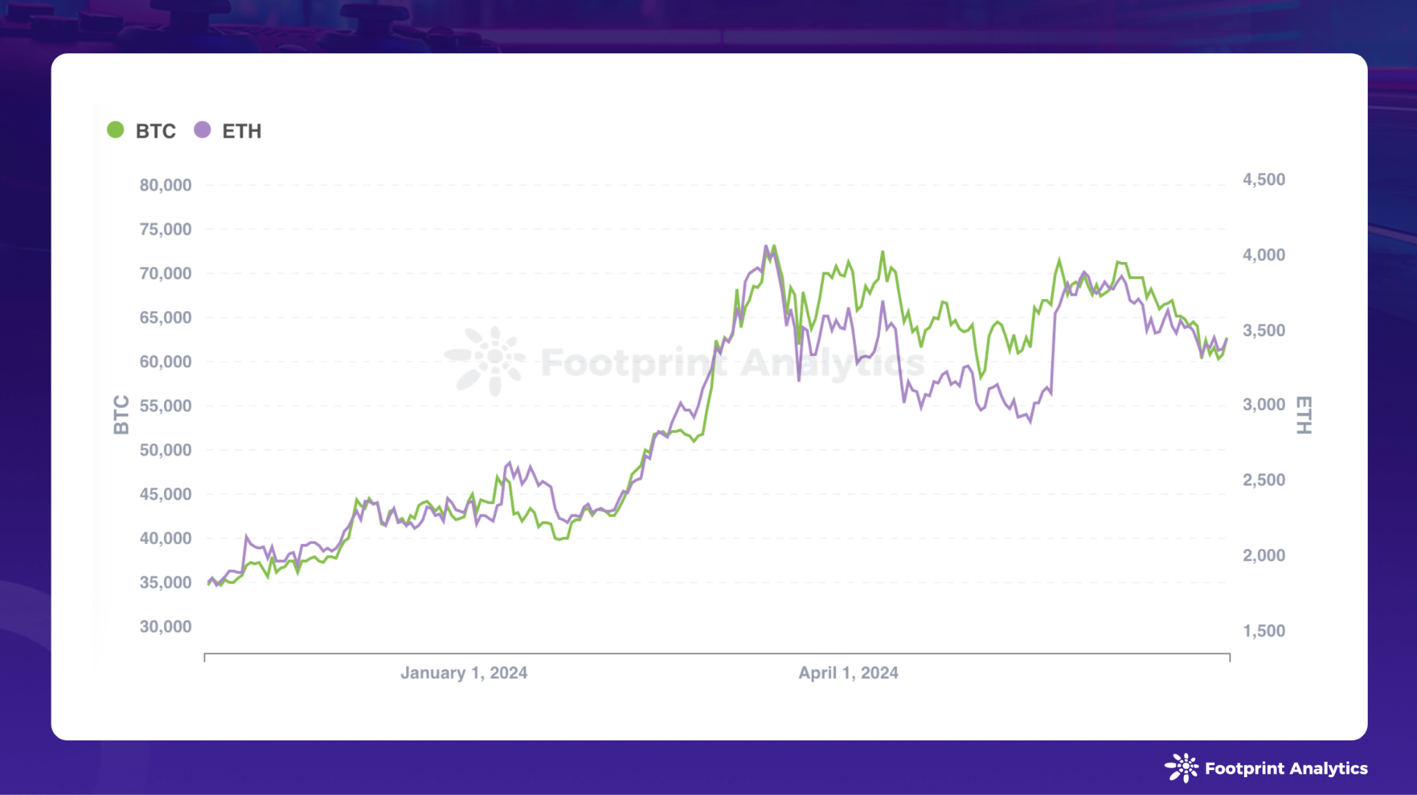 6 月期间,加密货币市场遭遇了回调。比特币价格自月初的 67,730 美元滑落至月底的 62,795 美元,跌幅 7.3%。以太坊价格同样下跌,从月初的 3,820 美元下跌至月底的 3,444 美元,降幅为 9.8%。