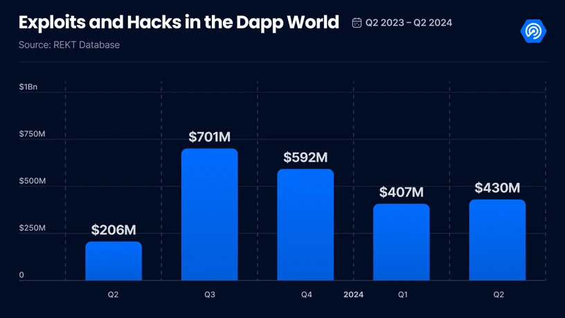 Web3行业的漏洞和黑客攻击仍然是一个值得关注的问题。2024 年第二季度因安全漏洞造成的损失高达 4.3 亿美元,比上一季度增长 5% 。