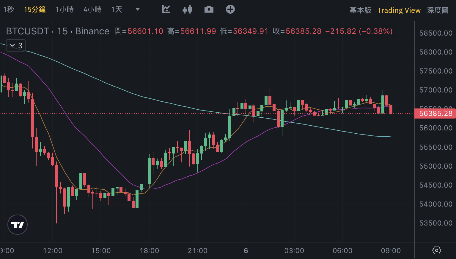 截稿前暂报 56,385.28 美元,近 24 小时下跌 1.43%。