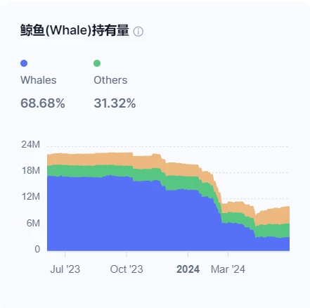 据按鲸鱼持有量分析,鲸鱼持有 68.68% $TON,散户持有 31.32% $TON。