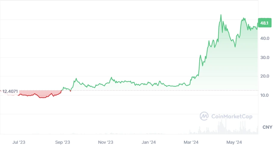 ● 走势:近一年内,$Toncoin 价格自 12.4071 ¥上涨至 56.54 ¥,涨幅超 400% ,体现了 TON 链强大的市场期待与致富效应。