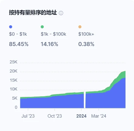 ● 筹码分布:截止 20246 月 3 日,根据 Coinmarketcup 数据进行分析, 85.45% 的持有者持有 0-$ 1 k $Toncoin, 14.16% 的持有者持有 1 k-100 k $Toncoin, 0.38% 的持有者持有超过 100 k $Toncoin。
