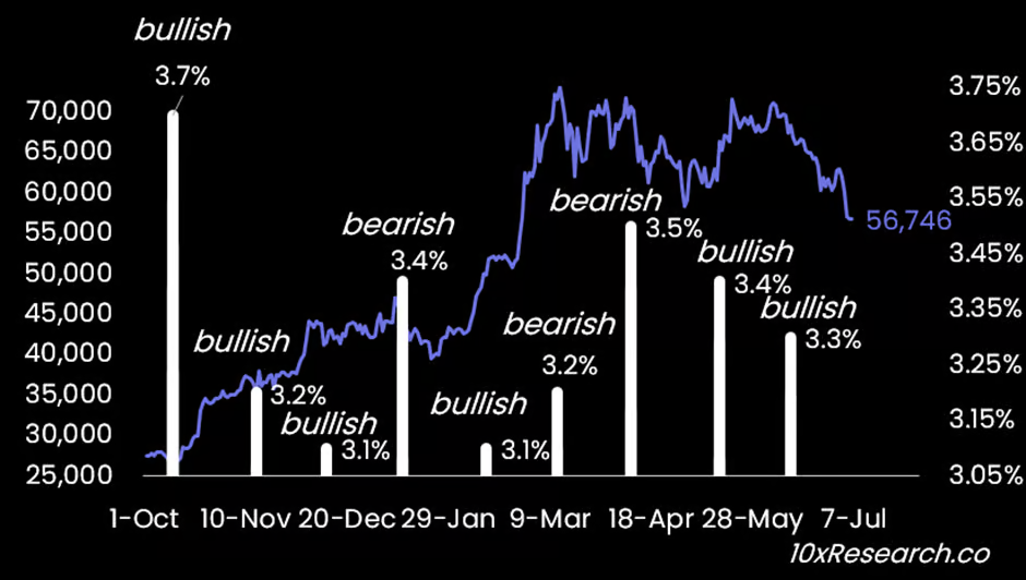博链财经BroadChain获悉,7月7日,10x Research 表示, 比特币 下跌目标 55000 美元已达成。