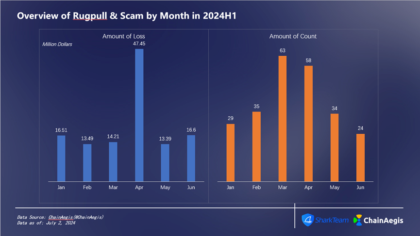 Figure 8 Overview of Rugpull&Scam by Month in 2024 H 1
