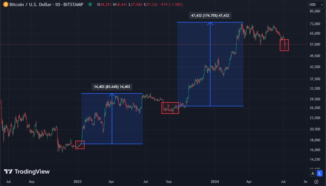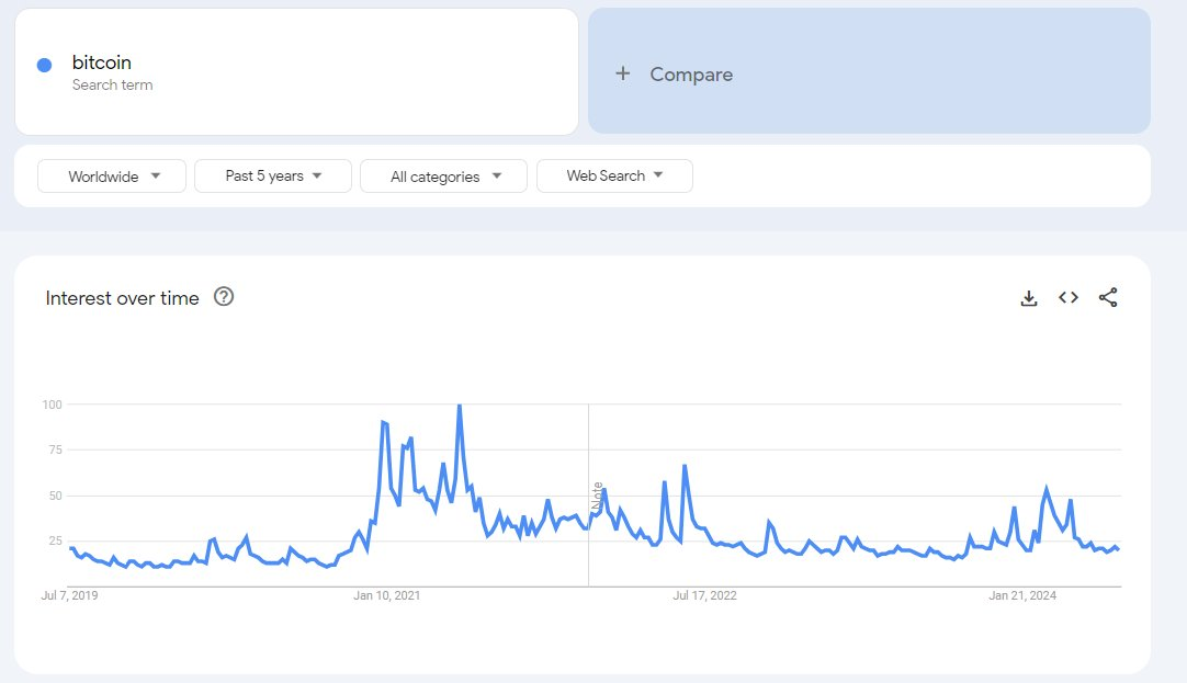 尽管比特币的价格较高,但与 2021 年相比,现在的交易量要低得多。散户参与度极低,因此一旦散户参与度增加,市场就会上涨。