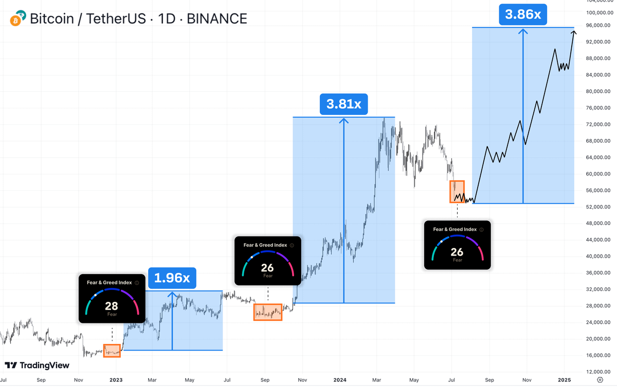 随着加密市场暴跌,恐惧与贪婪指数目前为 26 ,几乎创一年以来新低。上一次处于这一水平时,SOL 还在 11 美元。以往在 2023 年 1 月、 2023 年 9 月、 2022 年 7 月,该指数也出现过如此之低,随后市场开启上涨行情。所有人都说要在“在贪婪时卖出,在恐惧时买入”,但实际上只有 1% 的人这么做。