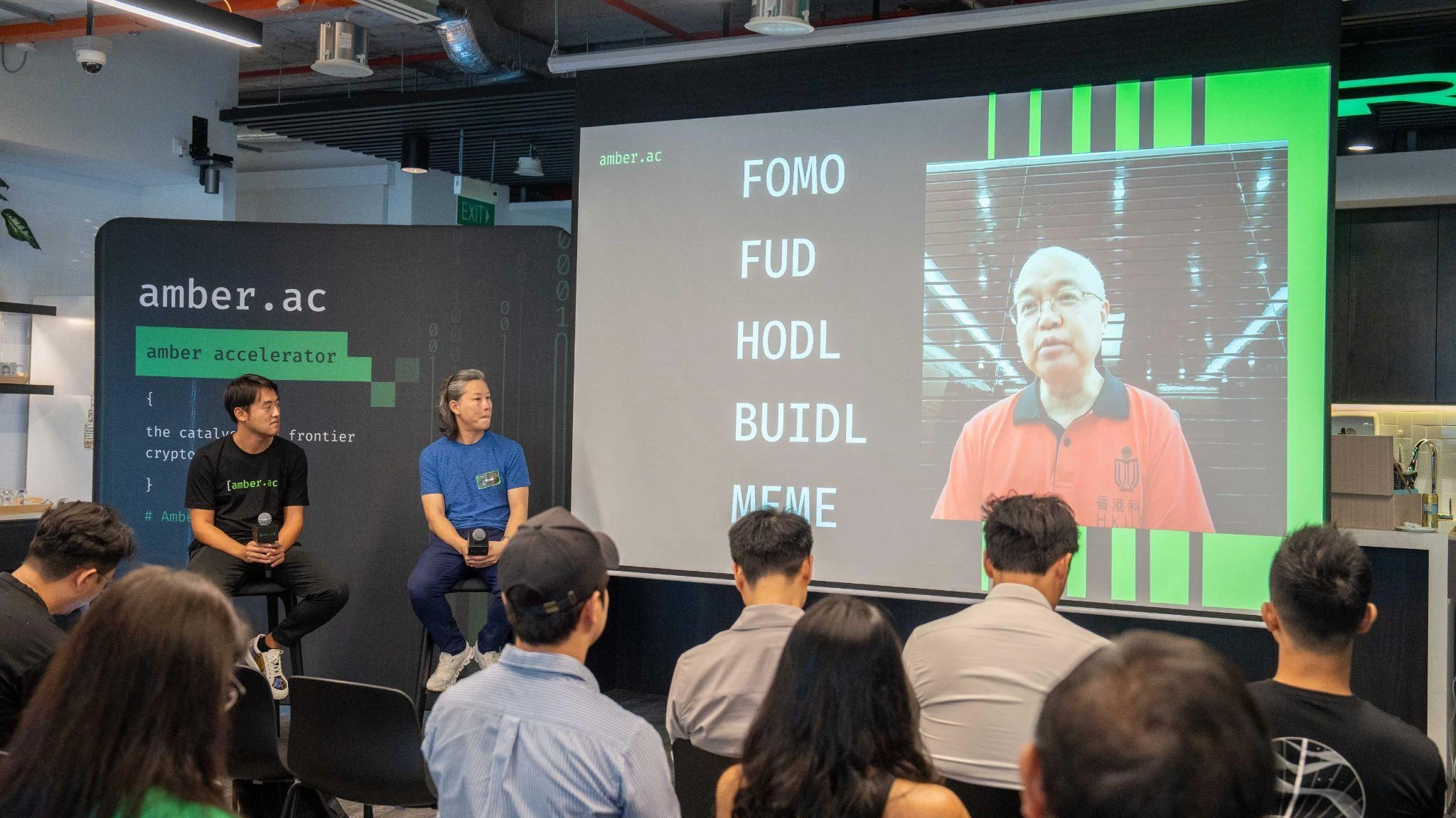 在 Michael 的主持下,Amber Group 还有幸邀请到了香港科技大学副校长汪扬教授和淡马锡 Web3 基金 Superscrypt 创始合伙人 Jacob Ko,围绕“FOMO、FUD、HODL、BUIDL、MEME”进行炉边对话。