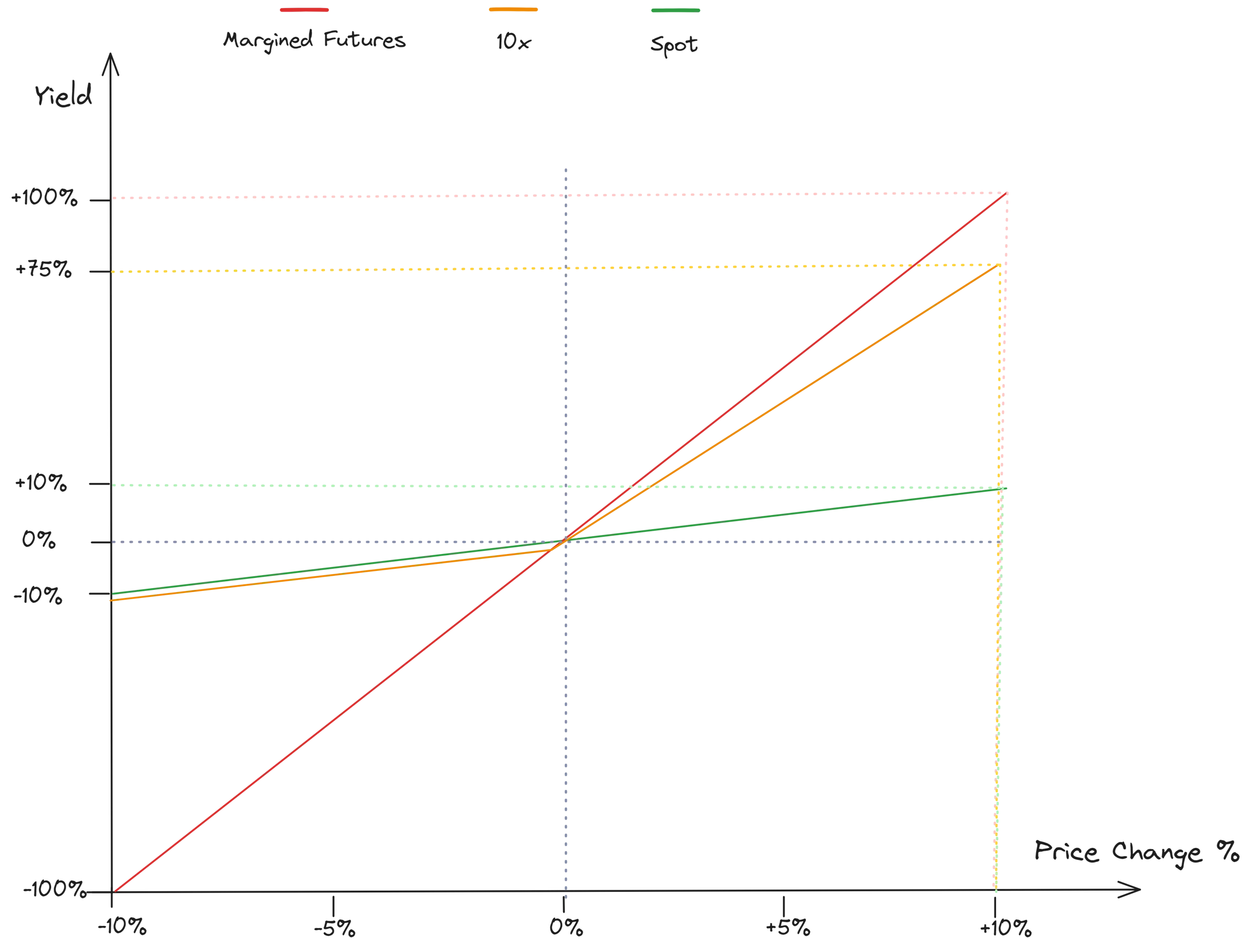 当代币池平均价格小于现货价格时(即现在 处于整体盈利状态 ),用户投入资产不会获得10x。