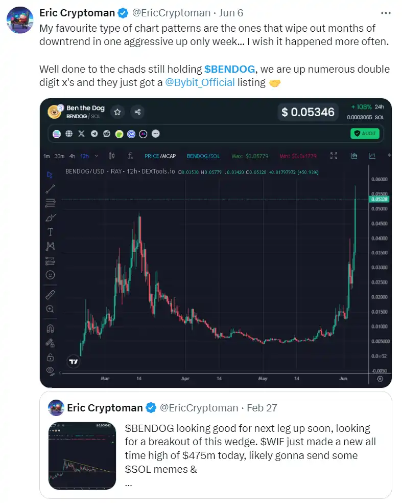 Eric Cryptoman 从开始到现在一直在支持 $BENDOG