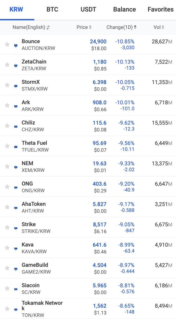 6 月 18 日,韩国社交媒体传言监管机构通知交易所“审查 600 多种加密货币”,随后韩国交易量最大的加密货币交易所 Upbit 一批上市代币的价格暴跌