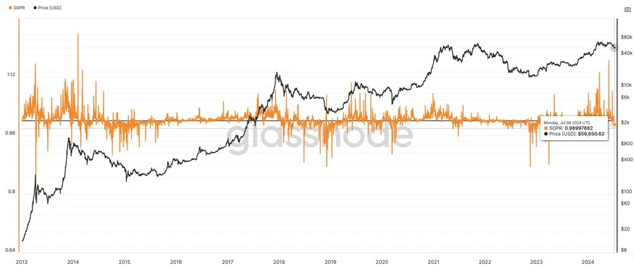 指标链接: https://studio.glassnode.com/metrics?a=BTC&ema=0&m=indicators.Sopr&mAvg=0&mMedian=0&resolution=24h