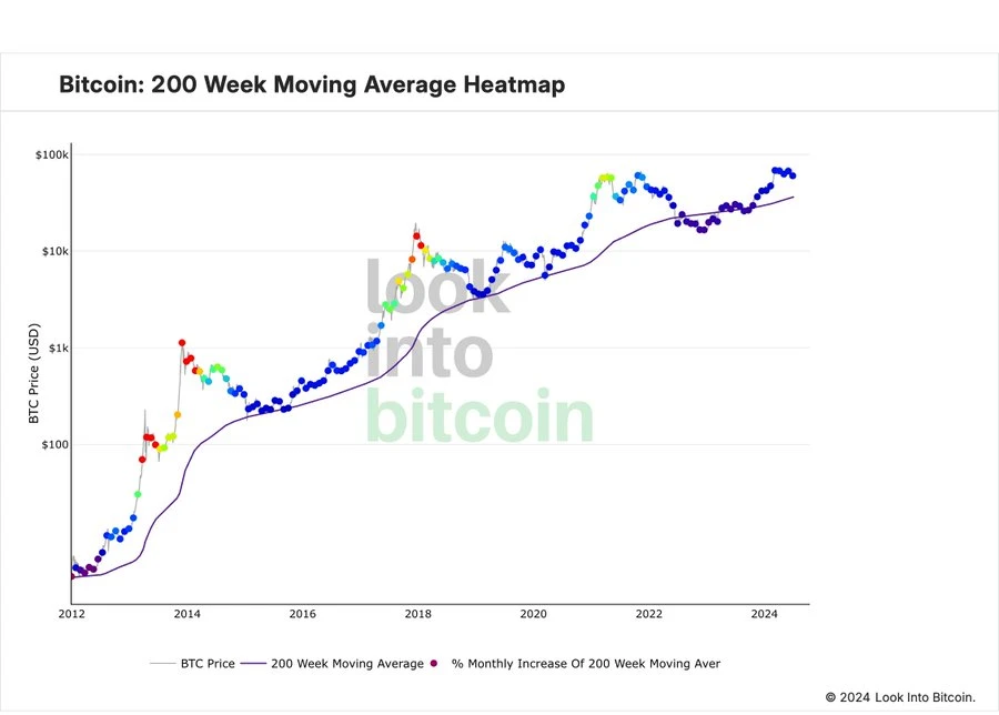 指标链接: https://lookintobitcoin.com/charts/200-week-moving-average-heatmap/
