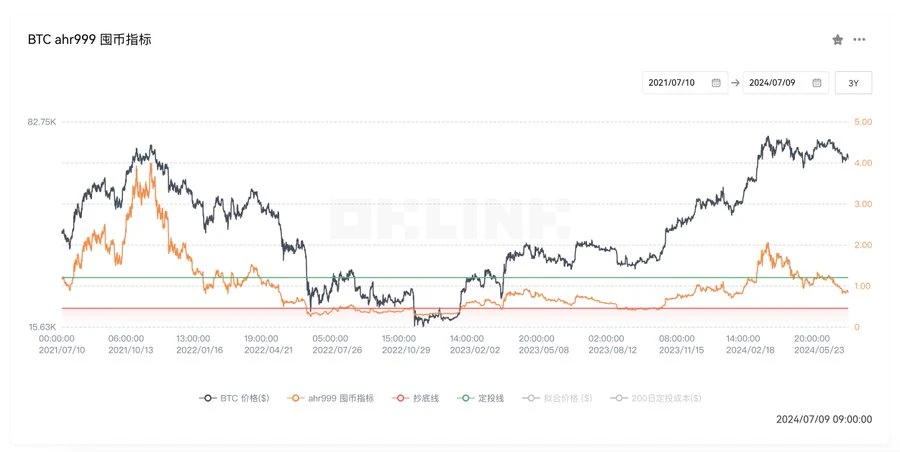 当 AHR 999 指数 >1.2 ,那么币价已经比较高了,不适合操作。