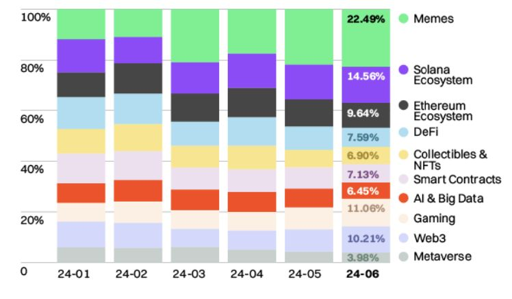 证据:memecoin 在 2024 年第一季度达到顶峰,此后呈下降趋势。