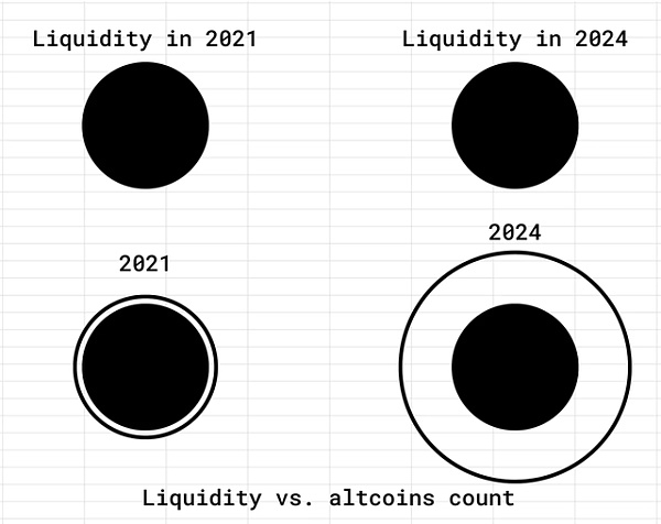 3.虽然流动性与 2021 年相同,但代币数量却增加了 50 倍。