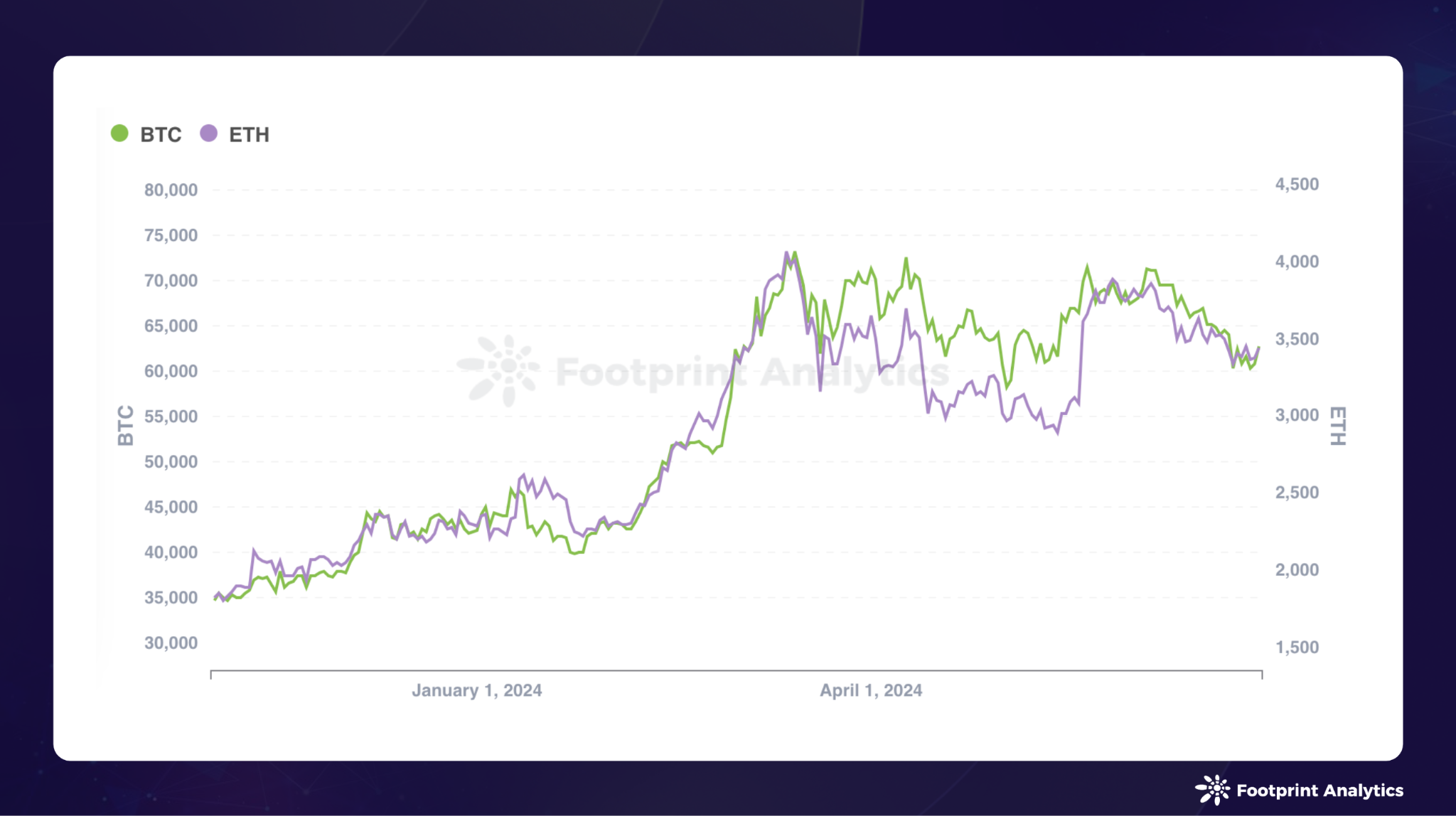 比特币价格自月初的 67,730 美元滑落至月底的 62,795 美元,跌幅 7.3%。以太坊价格同样下跌,从月初的 3,820 美元下跌至月底的 3,444 美元,降幅为 9.8%。