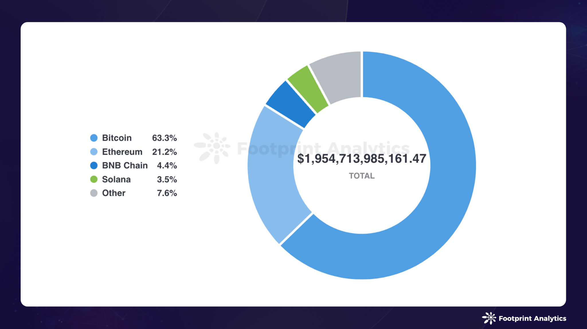 六月,加密货币市场经历了显著的回调。至月末,公链加密货币的总市值环比下滑了 7.7%,最终定格在 1.95 万亿美元。比特币、 以太坊 、 BNB Chain 和 Solana 继续占据市场主导地位,它们的市场份额分别为 63.3%、21.2%、4.4% 和 3.5%。