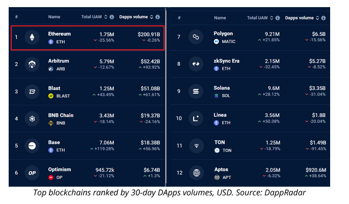 过去30天,以太坊链上DApp交易额超2000亿美元,Layer 2交易额增长明显