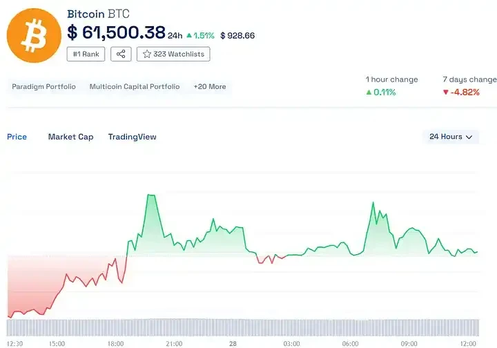 在撰写本文时,比特币的交易价格为 60, 500.38 美元,过去 24 小时内小幅下跌了 1.37% 。这种市场活动背景突显了这种大额比特币交易发生的更广泛背景。