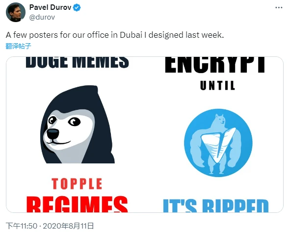 Pavel Durov 的推特早在两年前就停更了,从过往发的推文内容来看,Pavel Durov 似乎对“狗”影响有所钟爱。