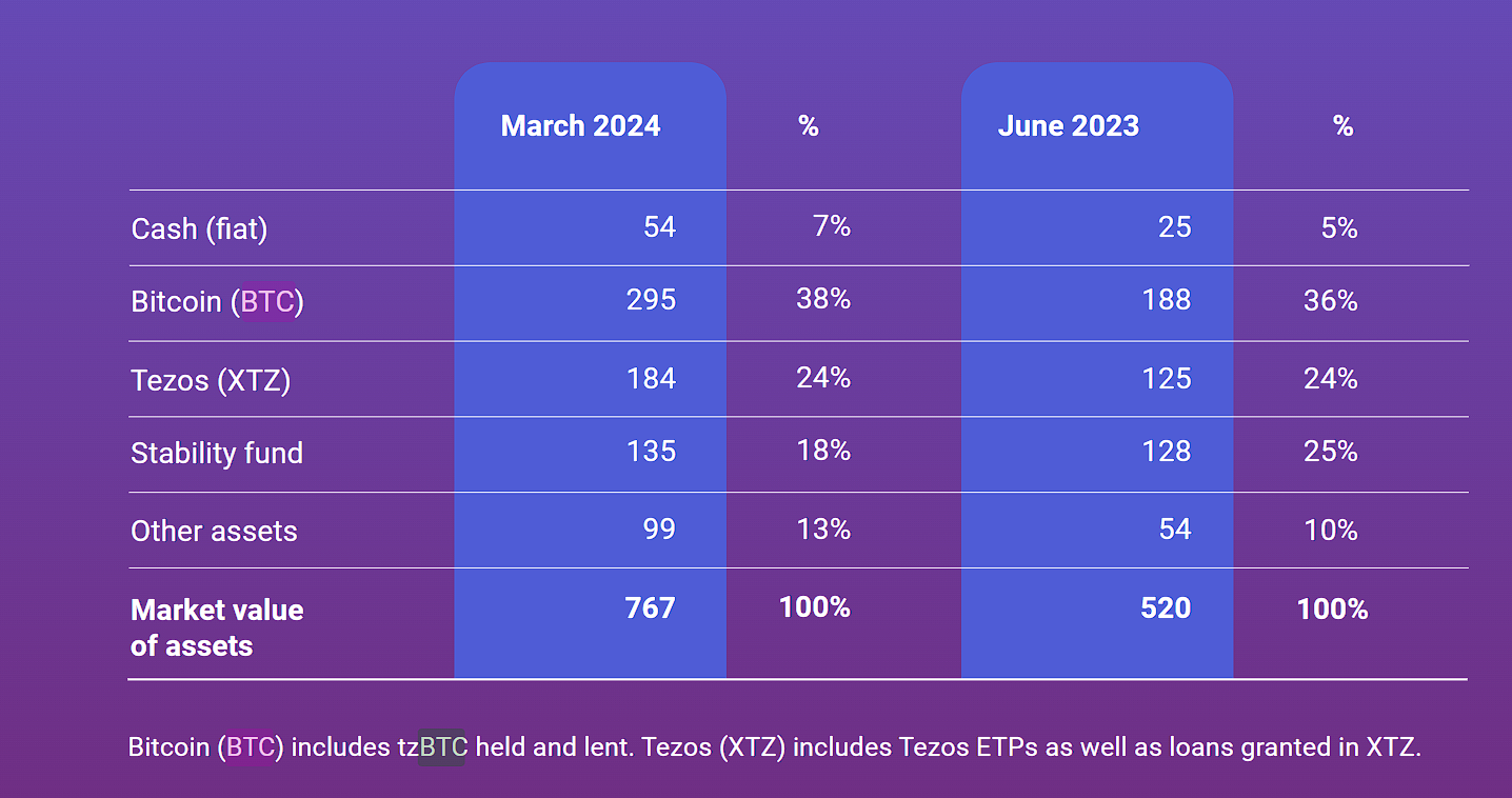 公链 Tezos 在 2017 年通过 ICO 获得了 2.32 亿美元的投资,虽然网传 Tezos 基金会持有 1.75 万枚比特币,但 PANews 据 Tezos 基金会 2024 年 3 月的报告显示,该组织目前仍持有价值 2.95 亿美元的 BTC,以当时的 BTC 价格计算,数量约为 5000 枚左右。不过,Tezos 当时在 ICO 时共募集了 65, 681 枚比特币、 36.1 万枚以太坊。这些代币如今的价值约合 48 亿美元,而 Tezos 代币 TXZ 目前的总市值约为 7.4 亿美元,也仅为筹款金额的 3 倍,甚至不如 Tezos 基金会的 7.6 亿资产。