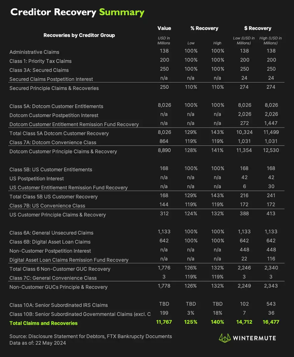 我们还有额外看涨催化剂,FTX 赔款索赔的 120 亿至 140 亿美元预计将在 2024 年 10 月和 11 月流入市场。这将为加密货币市场注入大量新资金,进一步推高市场价格。对于投资者来说,这无疑是个非常利好的消息。