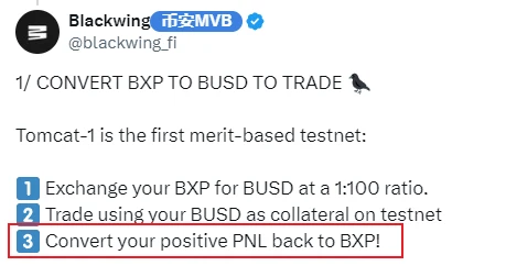Blackwing 将根据用户的盈利情况发放 BXP 奖励, 与交易次数、存款金额等无关 ,因此请用户 谨慎选择交易方向和币种,无需重复刷量交互 。