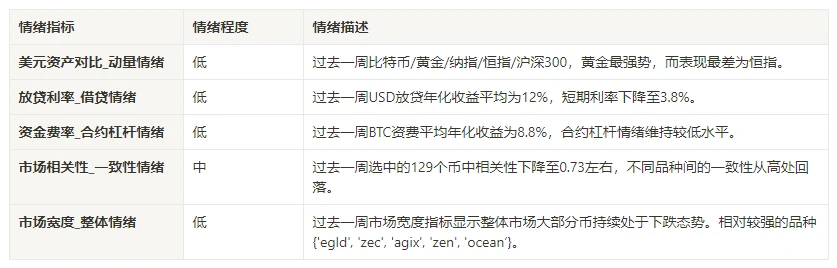过去一周选中的 129 个币中相关性维持在 0.73 左右,不同品种间的一致性从高处回落。