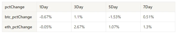 过去一周 BTC 价格上涨 0.51% ,ETH 价格上涨 1.3% 。