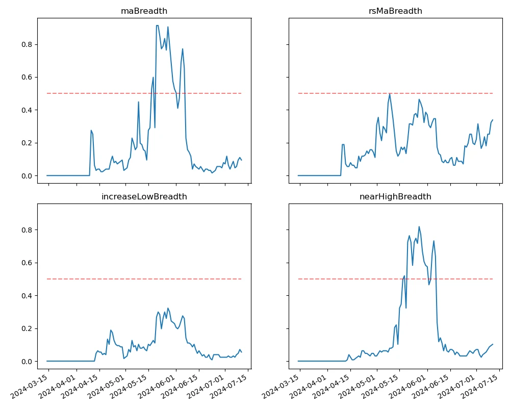 上图为['bnb', 'btc', 'sol', 'eth', '1000 floki', '1000 lunc', '1000 pepe', '1000 sats', '1000 shib', '100 0x ec', '1inch', 'aave', 'ada', 'agix', 'ai', 'algo', 'alt', 'ankr', 'ape', 'apt', 'arb', 'ar', 'astr', 'atom', 'avax', 'axs', 'bal', 'band', 'bat', 'bch', 'bigtime', 'blur', 'cake', 'celo', 'cfx', 'chz', 'ckb', 'comp', 'crv', 'cvx', 'cyber', 'dash', 'doge', 'dot', 'dydx', 'egld', 'enj', 'ens', 'eos','etc', 'fet', 'fil', 'flow', 'ftm', 'fxs', 'gala', 'gmt', 'gmx', 'grt', 'hbar', 'hot', 'icp', 'icx', 'idu', 'imx', 'inj', 'iost', 'iotx', 'jasmy', 'jto', 'jup', 'kava', 'klay', 'ksm', 'ldo', 'link', 'loom', 'lpt', 'lqty', 'lrc', 'ltc', 'luna 2', 'magic', 'mana', 'manta', 'mask', 'matic', 'meme', 'mina', 'mkr', 'near', 'neo', 'nfp', 'ocean', 'one', 'ont', 'op', 'ordi', 'pendle', 'pyth', 'qnt', 'qtum', 'rndr', 'robin', 'rose', 'rune', 'rvn', 'sand', 'sei', 'sfp', 'skl', 'snx', 'ssv', 'stg', 'storj', 'stx', 'sui', 'sushi', 'sxp', 'theta', 'tia', 'trx', 't', 'uma', 'uni', 'vet', 'waves', 'wif', 'wld', 'woo','xai', 'xem', 'xlm', 'xmr', 'xrp', 'xtz', 'yfi', 'zec', 'zen', 'zil', 'zrx' ] 30 日的各宽度指标占比