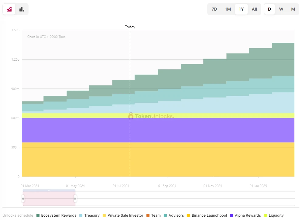 NEON 即将迎来首轮线性解锁(17 日起),NEON 周期内基本所有代币都为线性释放,每天共 177 万枚,按照当前 0.38 美元的价格,每日解锁金额约 69 万美元