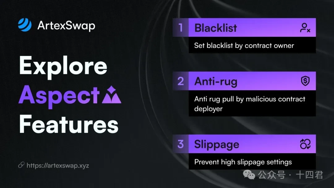 ArtexSwap 是一个去中心化交易所,通过使用 Artela EVM++和 Aspect 技术,去解决 MEV 风险和 Rug Pull 问题,提升了交易安全性和效率,适用于需要高安全性和灵活性的去中心化交易场景。