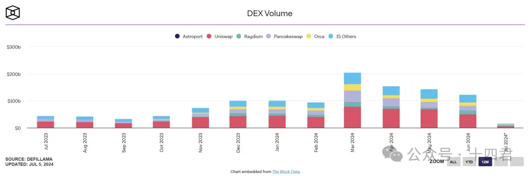 根据 CoinGecKo 的统计结果显示,截至到 2024 年 7 月 9 日,已知的 DEX 交易所约有 835 家, 24 小时的交易总量为 83.5 亿美元,其中月访问量达到 3.2 亿次。