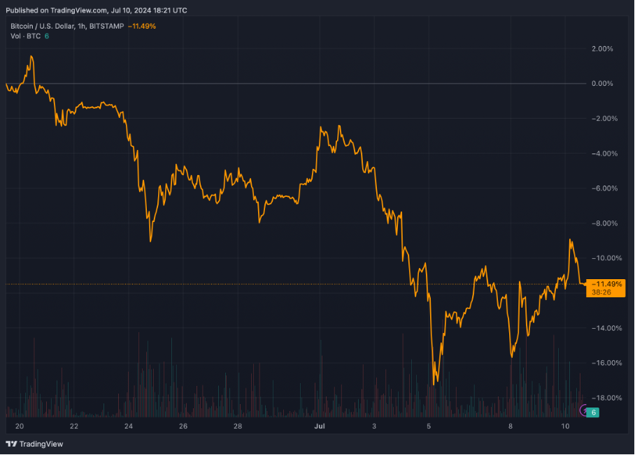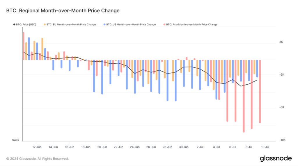 侭管在欧洲交易时间内会出现下跌,但在美国交易时间下跌更为明显。尤其是过去 5 天,月度环比下跌主要发生在亚洲交易时段。这表明,德国抛售并不是导致大部分价格下跌的直接原因,因为德国政府官员可能不会在夜间出售他们持有的比特币。