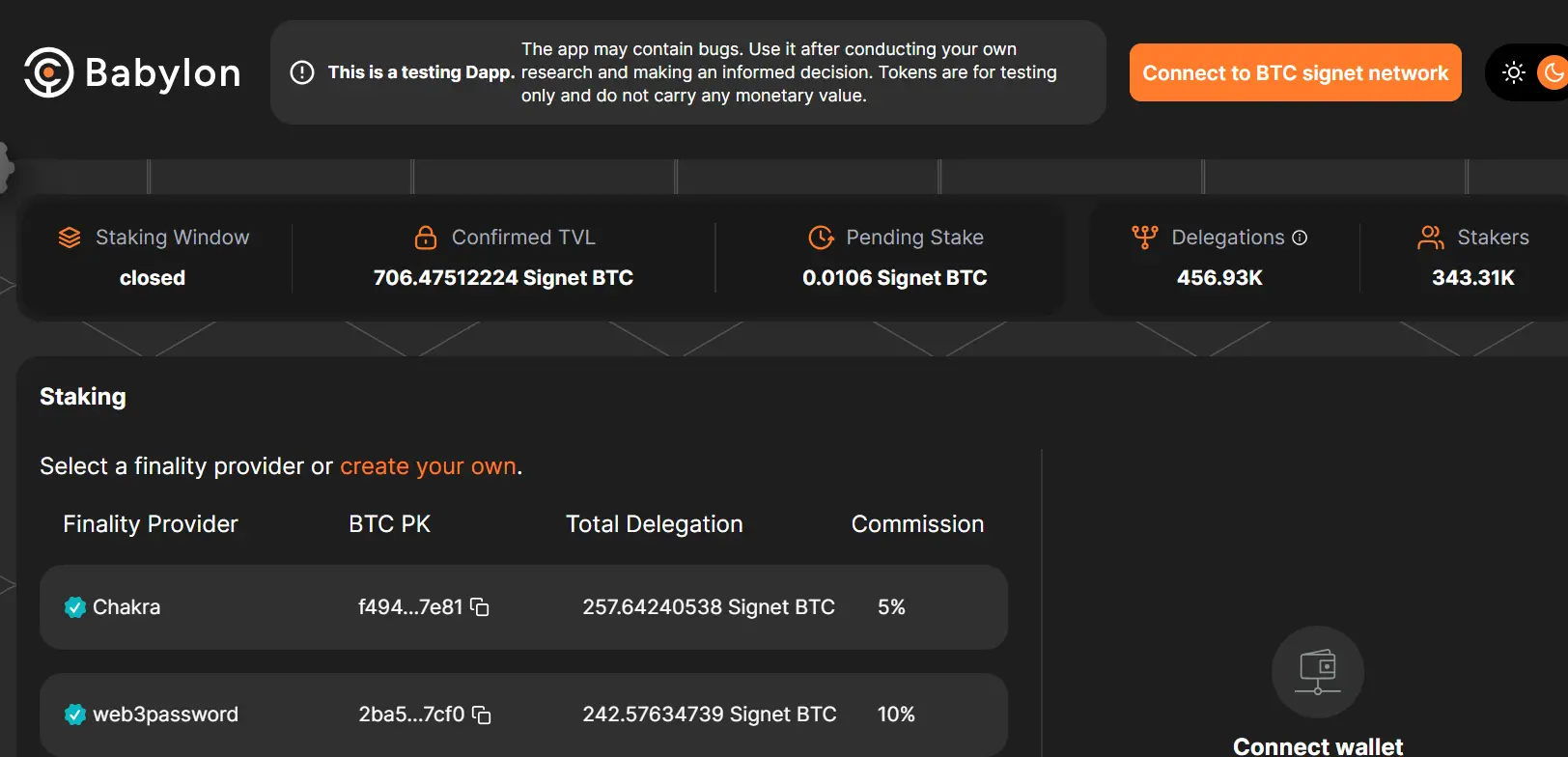 目前,用户可以通过 Babylon Testnet 4 测试体验质押 BTC 的流程。