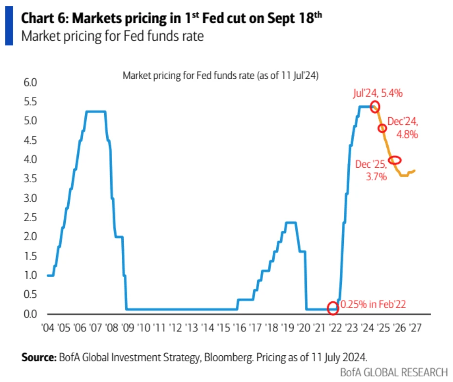随着美元走弱和美联储开始降息,新兴市场和加密货币可能受益,在不发生衰退的背景下。如果随后预期软着陆转为硬着陆时,迅速从股票类风险资产转向债券。