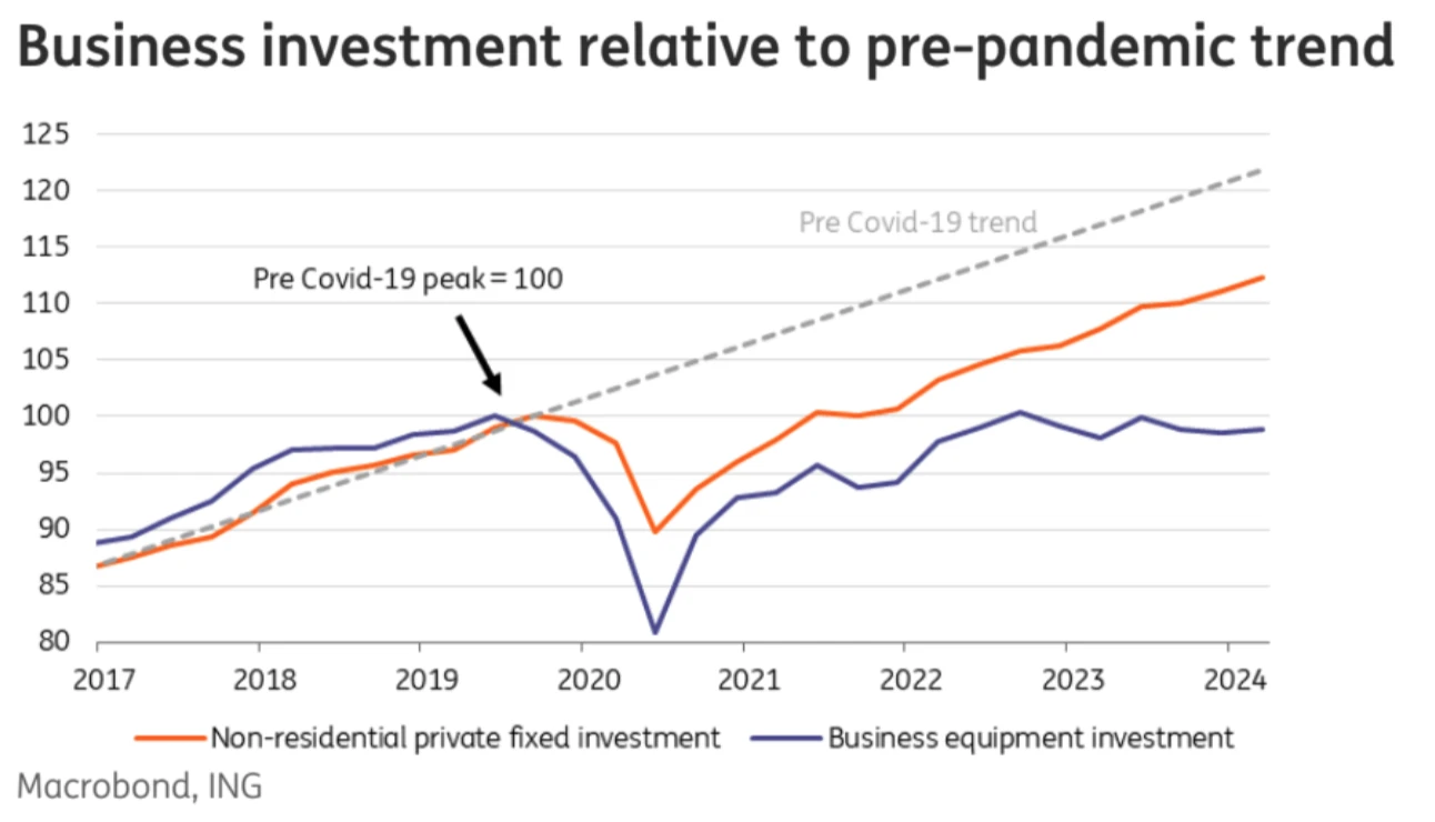 商业设备投资已经停滞不前,企业可能会因为担心新政府的政策变化而推迟项目,例如对石油和天然气勘探许可或外国电池制造厂的批准。这种政治不确定性使得企业对投资更加谨慎。