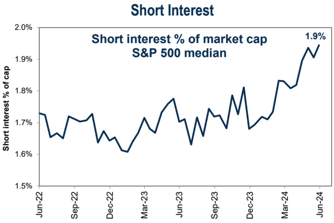 美股空头比重 6 月略有上升接近 4 年来最高水平,但总体水平仍然不高(高的时候可以到 3 ~ 4% ):