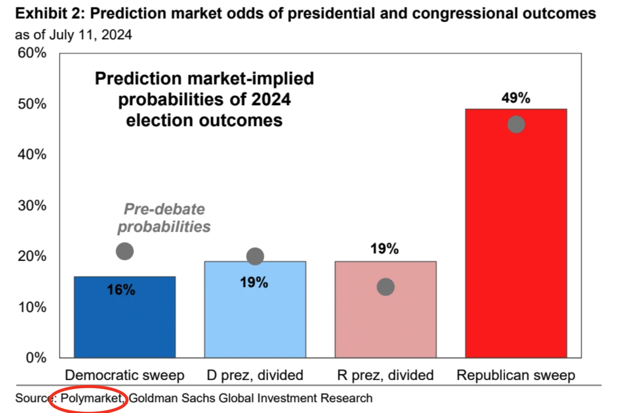 值得注意的是高盛援引了加密货币预测平台 Polymarket 的数据,这是加密应用正在“出圈”实用性逐渐增强的一个侧影。