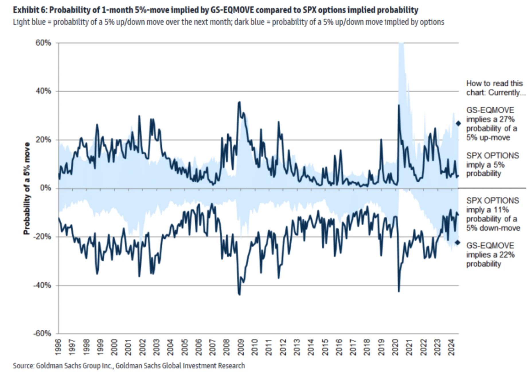 SPX 期权市场的隐含向上和向下的波动都很低: