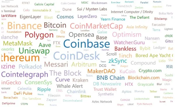 Web3领域最核心的品牌分布在交易所、底层公链、Web3媒体和分析工具领域
