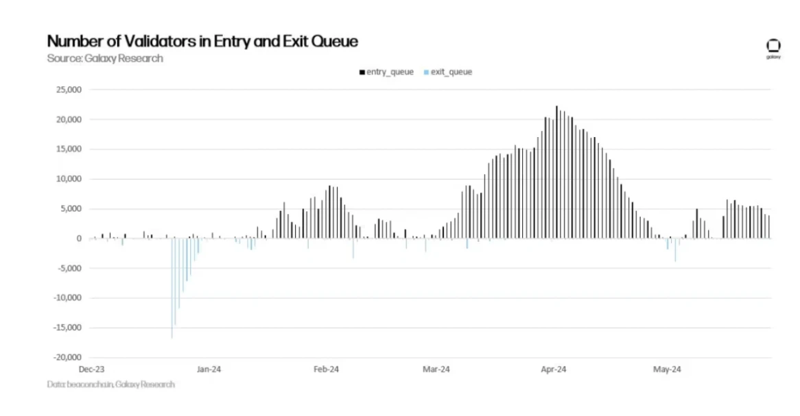 从历史来看,进入以太坊质押队列的需求高于退出的需求。尽管最近几天验证者进入队列的活动有所减少,但由于各种原因,质押需求预计将再次飙升,包括但不限于通过再质押获得额外收益、DeFi 活动复苏带来的 MEV 增加,以及 ETF 等传统金融产品中支持质押活动的监管变化。