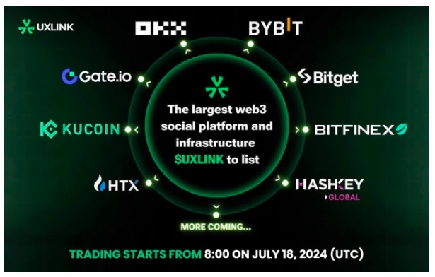 UXLINK将于新加坡时间7月18日下午4点上线OKX、Bybit等8家交易平台