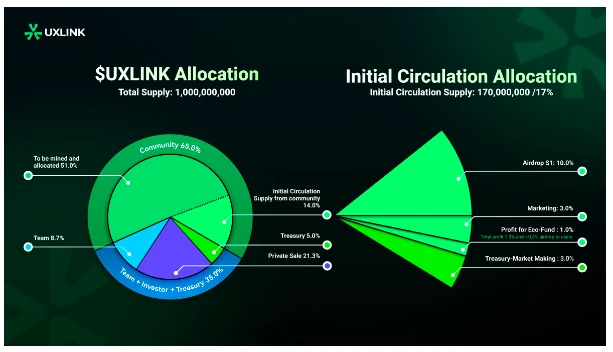 1. UXLINK 代币的整体分配和解锁周期