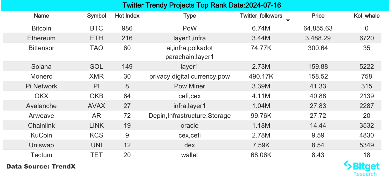 (2)欧美地区多个国家热搜上出现 JD Vance,JD Vance 是美国共和党副总统候选人,有媒体披露他本人持有 BTC,且他曾抨击美国 SEC 主席 Gary Gensler 的加密监管政策。