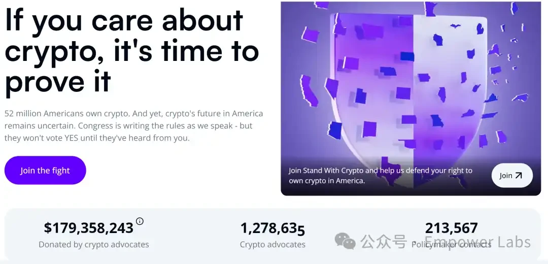 有了行业巨头的鼎力支持,Standing with Crypto 所凝聚的力量远超以往任何一次加密社区的政治参与。