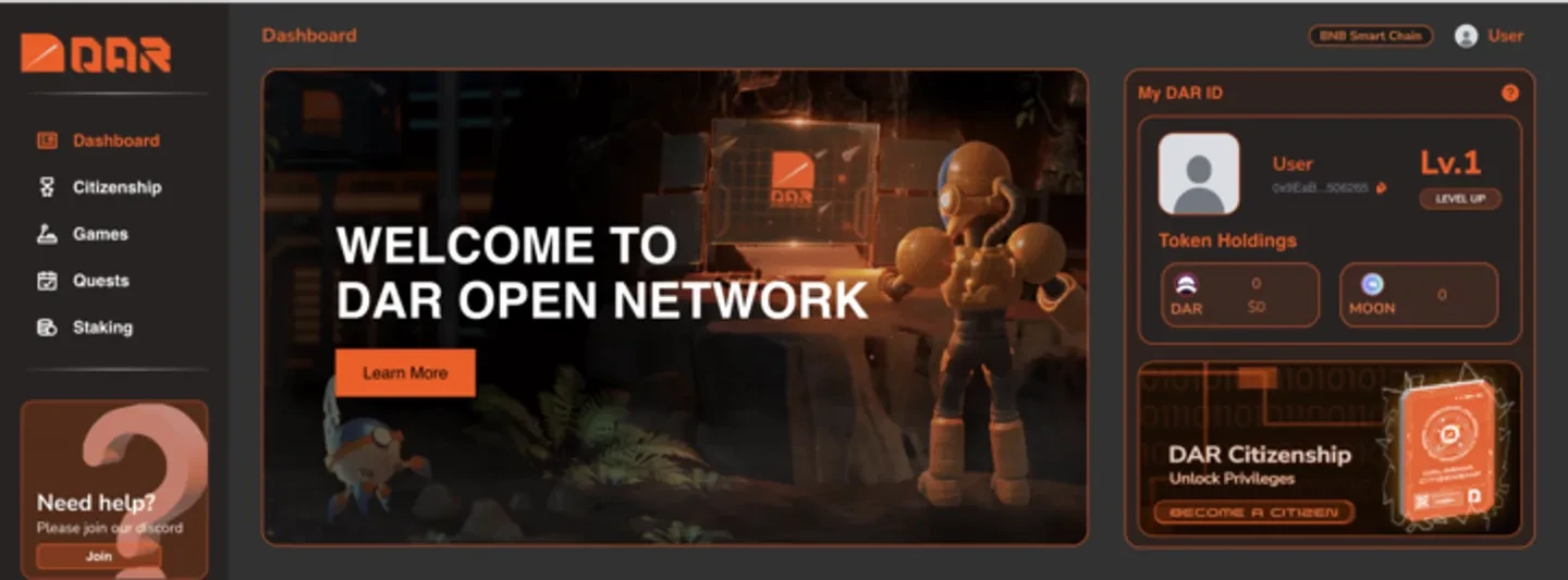 高级内容:DAR 代币持有者可以提前访问游戏内容和生态系统游戏中的独家高级内容。